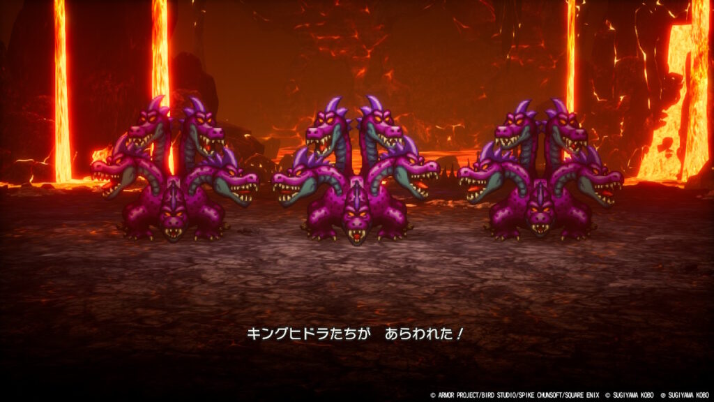 第3フロアのおろちのどうくつに似たエリアは、本作に登場する通常モンスターの中で最も経験値が高いキングヒドラが出現します。(経験値97,600)