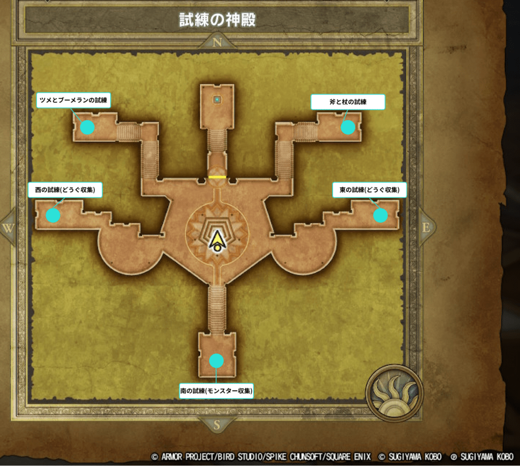東の試練 | 指定されたアイテムを見せる。見せるだけなのでアイテムはなくならない。 | 下の画像を参照。 ちいさなメダルを105枚収集する必要がある。 |